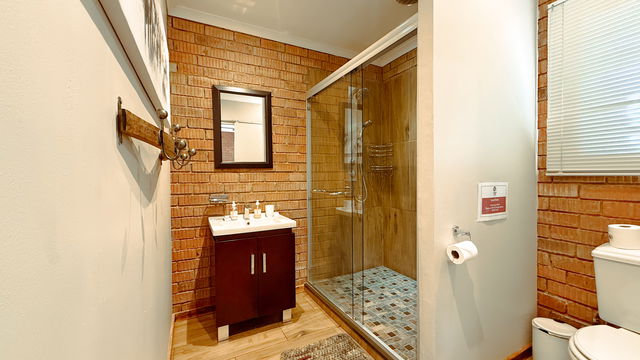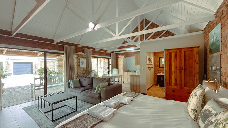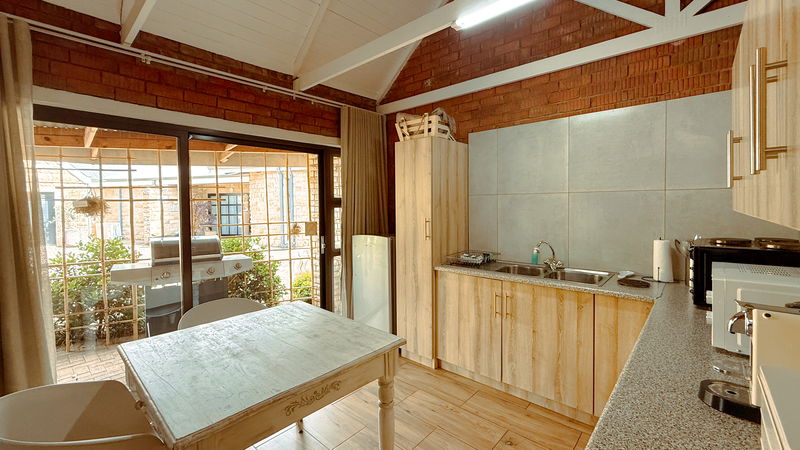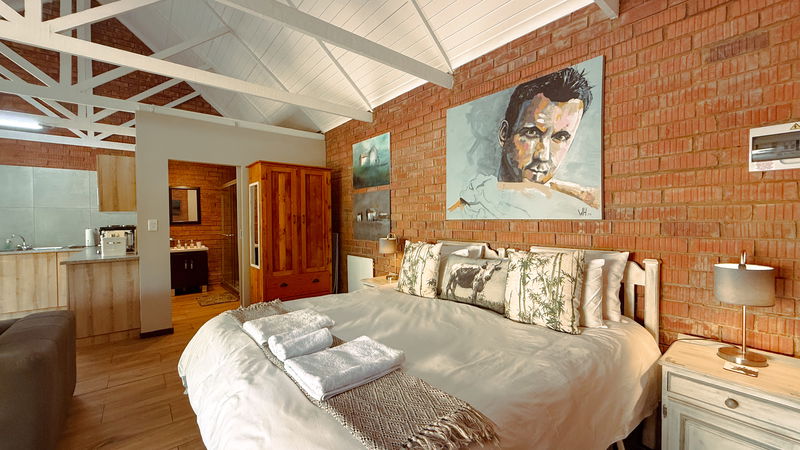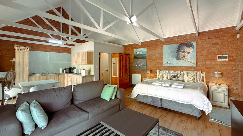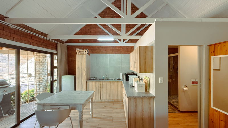 This is a contemporary and spacious Cottage that sleeps 2. The cottage boasts wonderful art work and incredible views on the mountains. Equipped with two single beds or one king bed (please request in advance) with en-suite shower, Smart TV, and Aircon. The kitchen has 2- plate stove. microwave, toaster, kettle, medium fridge with freezer. Towels, Linen and Cutlery etc. We provide coffee and tea facilities. Lounge and dining area. There is a gas-braai and seating area outside.